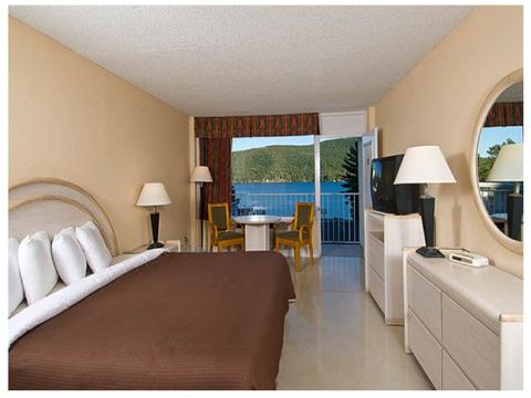 When you stay at Lakefront Terrace Resort in Lake George, you'll be on the waterfront, a 1-minute drive from Lake George and 8 minutes from Six Flags Great Escape. This beach hotel is 0.7 mi (1.2 km) from Black Mountain Loop and 0.9 mi (1.5 km) from Adirondack Winery.Head down to the water and enjoy a day at the private beach, or take advantage of other recreational amenities, which include a seasonal outdoor pool. This hotel also features complimentary wireless internet access, tour/ticket assistance, and a picnic area.You can enjoy a meal at the restaurant serving the guests of Lakefront Terrace Resort, or stop in at the snack bar/deli. Unwind at the end of the day with a drink at the bar/lounge or the poolside bar. Cooked-to-order breakfasts are served on weekends from 8:00 AM to 11:30 AM for a fee.The front desk is staffed during limited hours. Free self parking is available onsite.Make yourself at home in one of the 71 air-conditioned rooms featuring refrigerators and microwaves. Complimentary wireless internet access keeps you connected, and satellite programming is available for your entertainment. Private bathrooms with shower/tub combinations feature complimentary toiletries and hair dryers. Conveniences include phones, as well as coffee/tea makers and irons/ironing boards.